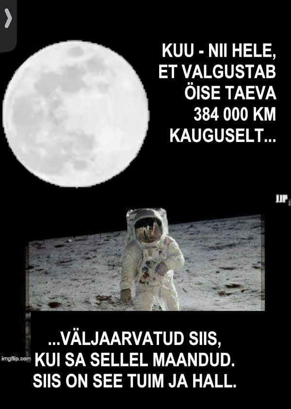 Ja sinna taevasse Ta pani 3 suurt valgust: päikese, Kuu ja tähed.
